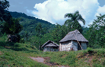 Traditional cabins in Sierra Maestra. Although Cuba is one of socially most advanced countries in Central America, such buildings are still common in the mountains.