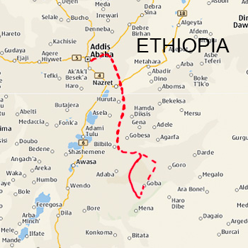 I didn't plan the complete route before the expedition. I only knew that would need one whole day in Addis Ababa — to meet the driver and to exchange the money. I also was planning to spend 3 days in Dinsho — to photograph wildlife and to make all arrangements for the rest of the trip that was supposed to be like in 2012 — hiking, and the luggage transported by horses.