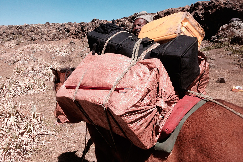 This time I needed only 3 horses because the duration of trekking in Bale Mountains was shorter and because I had only two pieces of luggage with combined weight of around 40kg, and not over 55kg in 3 pieces as last time. Therefore only two horse assistants were necessary.