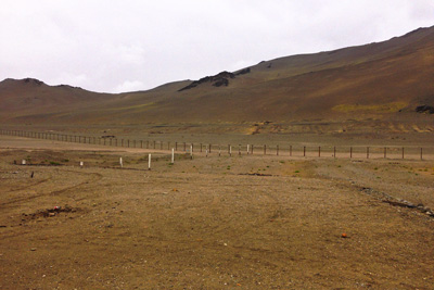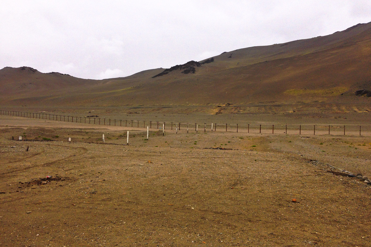From Murghab town to Karakul lake the road often goes along the Chinese border that is fenced. This area at both sides of the fence is completely wild. Though it is human-made, the fence doesn't disturb the natural landscape. Instead it is an interesting element that provides a little dynamics to this uniform and minimalistic scenery.