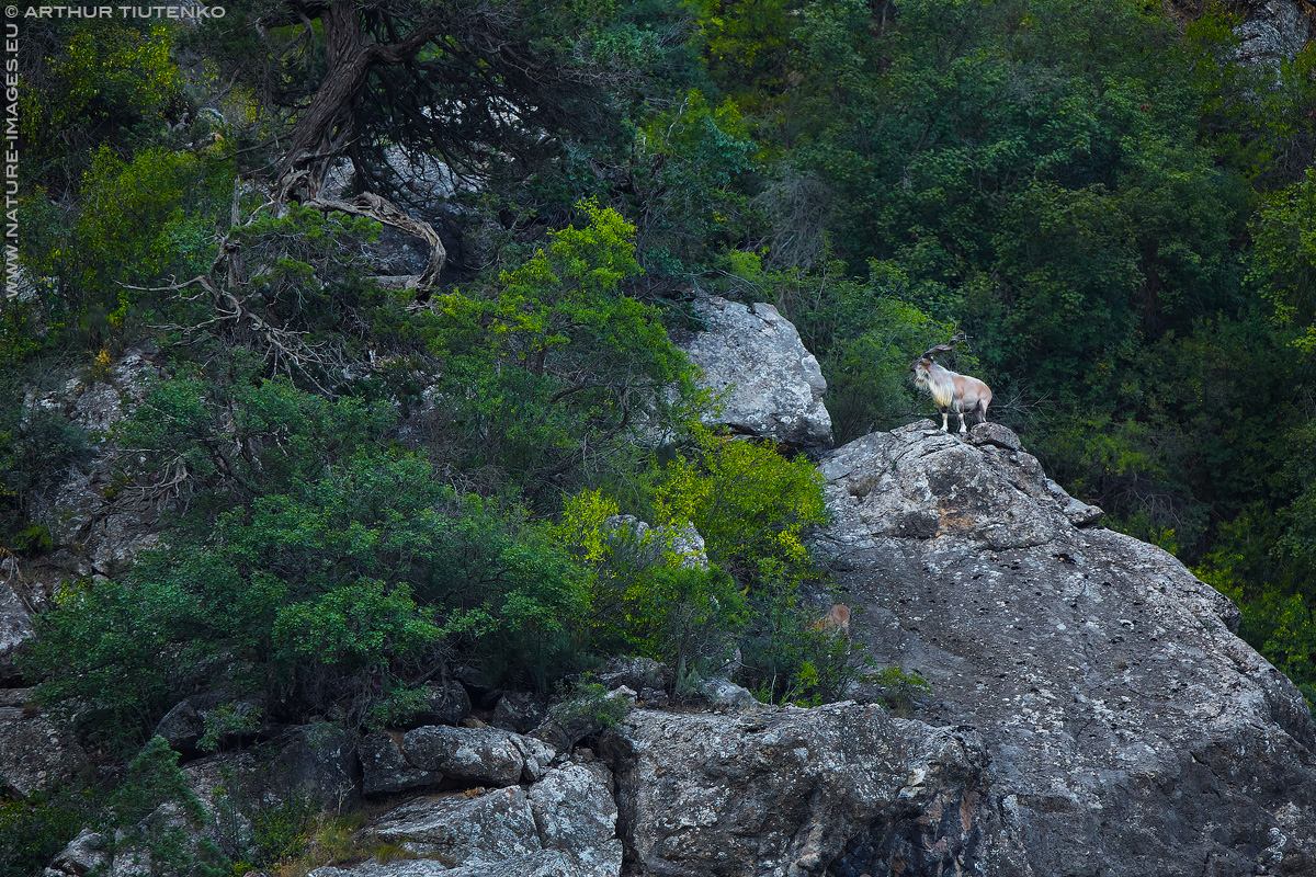 In the place where I was, marhors hadn't been hunted for at least 15 years, but still appeared to be very shy compared to ungulates in other parts of the world that I had a chance to photograph. They see extremely well and can notice the slightest movement at least 500m away from them — a distance that hunters are already able to shoot an animal from. This is a source of misconception that the guides may have about the requirements of a photographer. Although I had told my requirements in advance, my guides were still thinking that 50-100m that I was talking about were an exaggeration. I don't know how that Swiss guy had been working, but I was surprised when they kept telling me that he hadn't needed to be so close to the animals as I was insisting all the time. However, it is obvious that to get a decent quality shot of an animal that is 1m high even with a 600mm lens a photographer has to be not further than 100m from it. Otherwise, the image would need to be cropped. The images that they were showing me, that had been made in this place by others, were shots just “for a record” — i.e. lacking an artistic component.