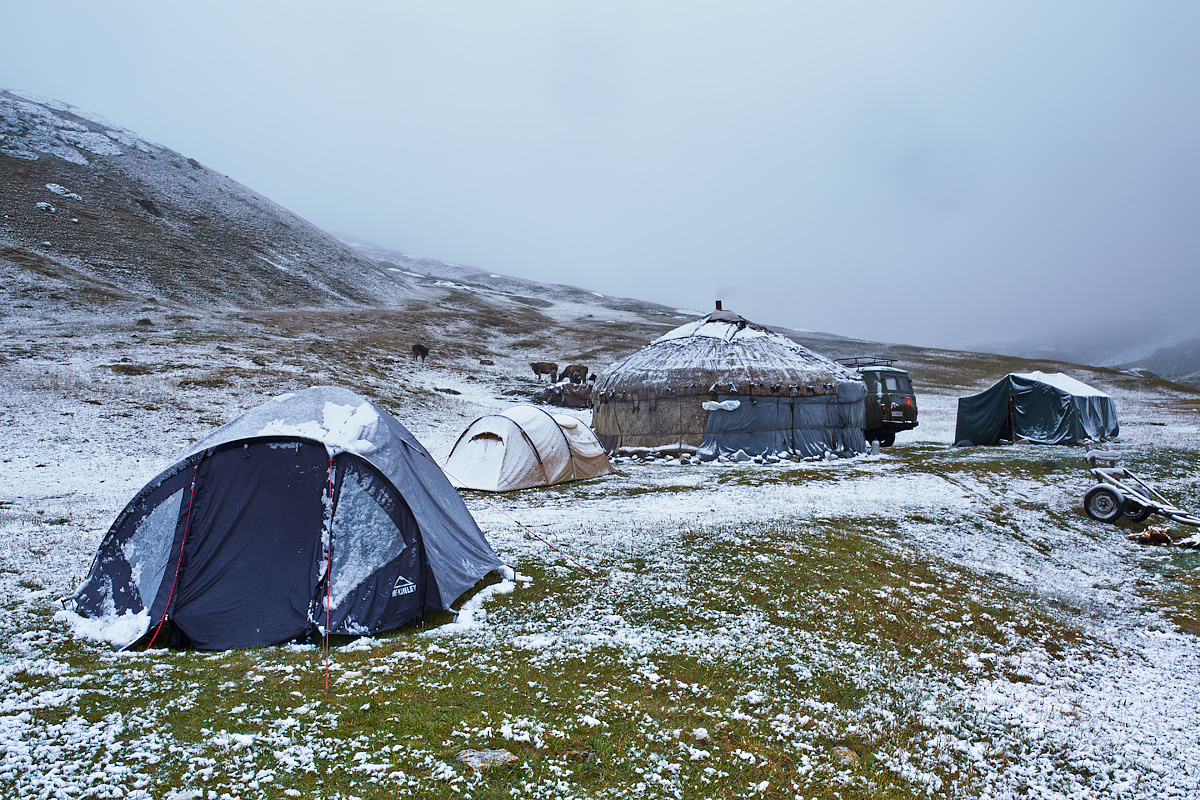 The choice of inexpensive tents is very broad. Such tents also look very nice and similar to some very expensive. Therefore, many people are tempted to purchase one, and so was I. As I reported in my Field Notes from Ethiopia, 2012, I had such a cheap tent on my Ethiopia trip that I gave as a tip to my guide before departure back to Europe. This tent wasn't good but survived the weather and climate of Ethiopian mountains. Since I had been planning to go to Ethiopia again this year, I purchased another such tent in order to use it during the trip and to leave it in the country after that. I had to delay my plans for Ethiopia to the next year because I was invited to participate in this expedition to Central Asia. Since I already had that tent, I took it also on this trip expecting to be able to use it just like in Ethiopia because I thought that the climate should be similar at the same altitude in Pamir and Alai. I understood that this assumption had been wrong already on the first days and nights at an altitude over 3500 MASL. In Central Asian mountains everything is much tougher than in Ethiopia — the climate, the relief, the soil. Although a cheap tent may withstand it most of the time, but it is really no fun to pitch it and try to sleep in it in the wind, under ice cold rain or snow. It may even become dangerous, when half an hour remains till it gets completely dark, but you are still having a fight with your already completely wet tent that doesn't want to stand under heavy rain and wind. Everything can become even worse if it starts snowing. The snow will be wet and heavy, and you will need to knock or sweep it from the roof of the tent now and then in the night instead of sleeping because the tent may collapse under this weight.