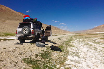 In high altitudes the fuel consumption increases due to low level of oxygen in the air. Even car models that are otherwise considered as economical consume much more fuel there also due to other factors such as poor driver skills, bad technical condition of the engine, too frequent driving with low speed. I was surprised that a not very old Toyota Landcruiser that we hired for a part of the route from Khorog to Murghab needed up to 25l of petrol per 100km. Beware of old Soviet cars, such as GAZ 66. They are petrol powered and will need really much fuel for driving in the mountains. Diesel powered cars may be available but for unknown reason were rare this time.