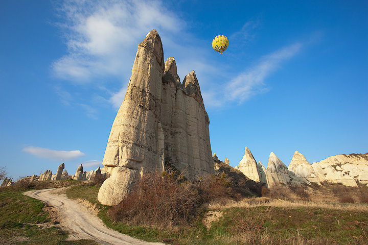 I took both my cameras and all lenses with me on this trip. But since I was photographing mainly landscapes, I made the most shots with the full-frame EOS 5D Mark II and wide angle lenses — Carl Zeiss Distagon 3.5/18mm ZE and Canon TS-E 24mm f/3.5. In some situations I had wished even a wider or a narrower view angle. Thus, if you are going to Cappadocia, bring all your wide lenses — up to 35-40 mm. Certainly, you should also bring a tripod if you are serious about landscape photography: I made at least 80% of landscape photos with the camera mounted on Novoflex Quadropod. Flash can help sometimes to lighten up details in foreground: I was using an off-camera flash remotely controlled via Pocket Wizard.
