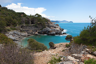 At about half the way between Alanya and Gazipaşa there is a quite large and beautiful ruin of an ancient town Selinus. You reach another one if you pass Gazipaşa by the road to Anamur — Antiocheia Ad Cragum — that seems to be of greater archeological interest but isn't as spectacular and attractive for a photographer. Ancient ruins in the Mediterranean region of Turkey are worth a separate mentioning. I explored 5 such sites: