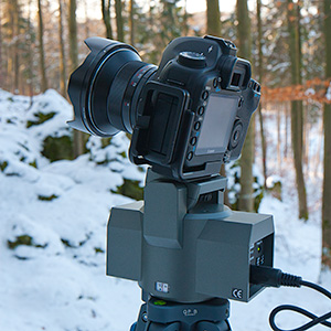 Surprisingly, there are quite few such devices for photo cameras on the market. The need for a motorized tripod head for photo cameras in some situations is so obvious that I can't believe that the first such products appeared only recently. It looks like they first became an issue of interest for a mass consumer after the popularity of consumer video cameras had grown and HD video capable photo cameras appeared. However, for professional video and cine cameras motorized supports have been known already many years before. For example, such professional camera mounting systems are being manufactured by Varizoom and used in film and TV studios. For use in nature photography such equipment is too bulky and heavy, and, with the price tag of several thousands of dollars — too expensive for most amateurs who would need it only occasionally. In 2010, Gitzo presented GH5130RC Athena — the first professional quality motor-driven head for DSLR cameras on the market. At the time of writing, this product wasn't yet available for purchase, and no definite retail price was yet announced. However, some dealers were already offering pre-orders of it for about 10,000$. This head looks like the technically most advanced and best quality motorized head for photo cameras so far. Unfortunately, its price would exceed the budget of most photographers. If a wildlife photographer would have this amount of money, he would most likely prefer to spend it for a 800 mm lens rather than for a tripod head.